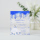 Un fond qui ressemble à de l'argent faux. Décoré avec un effet de peinture bleue royale qui goutte, des paillettes. Personnalisez et ajoutez un nom et les détails de la fête. Le nom est écrit avec un style de lettrage manuscrit.