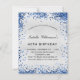 Pour un 40e anniversaire élégant (ou tout âge). Un fond aspect argenté factice. Décoré de paillettes factices bleues marine et d'étincelles. Personnalisez et ajoutez un nom, un âge et les détails de la fête. Le nom est écrit avec un style de lettrage manuscrit