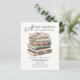 Célébrez votre prochain mariage avec notre charmant Fleur sauvage Réserver Thème Bridal Shower Invitation! Cette invitation est la meilleure façon de donner le ton à une douche nuptiale à thème littéraire, avec de délicieux livres ornés de fleurs sauvages sur un arrière - plan crème. L'inverse est un design vintage de couverture de livre. L'invitation est facile à personnaliser avec tous les détails importants de l'événement. Commencez à planifier une douche nuptiale mémorable et significative qui célèbre l'amour des livres et la joie des nouveaux débuts!