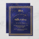 Un arrière - plan bleu foncé, bleu marine. La couleur bleue est inégale. Avec un cadre doré et des confettis dorés saupoudrés, des lettres de couleur dorée. Personnalisez et ajoutez l'année de naissance, le nom, les détails de la fête. 1 feuille = 1 invite imprimé bord à bord.