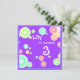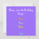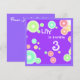 Bulles colorées contre l'arrière - plan violet.Carte d'invitation joyeuse pour les occasions pour les enfants /annonces.Vous pouvez changer tout le texte des deux côtés.De cette façon il convient à tout âge ou fête /annoucements.modèle d'invitation personnalisé par Alma Wad. Voir timbre correspondant :