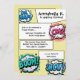 Cette invitation de fête personnalisée présente un thème de bande dessinée coloré sur fond jaune. Les mots et les phrases d'action de bande dessinée populaires à l'intérieur de bulles de parole tels que "Oh, Snap", "OMG!" "BOOM!" et "WOW!" sont placés autour des bordures. Les informations sur l'événement sont imprimées à l'intérieur de boîtes de discussion qui ressemblent à des bandes dessinées typiques. C'est parfait pour une fête de mariage, un anniversaire ou une autre célébration excitante.