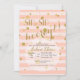 Une invitation branchée à la douche nuptiale en corail, blanc et or. Le arrière - plan présente des rayures de corail et de blanc avec des éléments de confettis dorés. <a href="http://www.freepik.com/free-vector/blue-and-pink-banners-with-golden-confetti_967026.htm">Conçu par Freepik</a>). <br/>() La carte est facile à customiser avec votre libellé, police, couleur de police, options de forme de papier et choix de six types de papier.<br/>() Pas exactement ce que vous cherchez? Tous nos produits peuvent être conçus sur mesure pour répondre à vos besoins sans frais supplémentaires.<br/>() Communiquez simplement avec nous à heartfelthelper@gmail.com<br/>() Coordonner les produits disponibles : Demande-nous !