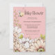 Un design amusant mignon avec un bourdon sucré en haut et de grandes fleurs en bleu et blanc bordant le côté gauche et les bords du fond sur un arrière - plan de rose bébé qui est aussi sur le dos. Le Baby shower d'en-tête principal est dans un style artistique fixe et le reste du texte que vous pouvez facilement personnaliser à vos propres détails. Vous pouvez également modifier les couleurs de texte marron si vous le souhaitez via l'option Cliquer pour Customiser plus ainsi que les couleurs arrière - plans de chaque côté via l'option customiser plus.