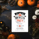 Avec les mots "Just a Bunch of Hocus Pocus" dans un jeu de couleurs orange, blanc et noir et style typographique rétro sur l'arrière - plan blanc ces invitations de fête d'Halloween sont parfaites pour invitation vos amis et votre famille! Personnalisez avec les détails de votre fête d'Halloween en dessous en lettres blanches sur un arrière - plan noir. Les couleurs sont changeantes !