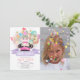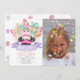 Cette mignonne invitation photo d'anniversaire de fille comprend un lapin lapin qui regarde du casquette d'un magicien avec des étoiles en or faux/faux, des drapeaux de bottes et des ballons colorés en aquarelle. L'envers est composé d'un arrière - plan blanc avec des pois. Personnalisez-vous pour répondre à vos besoins. Vous pouvez trouver d'autres produits correspondants dans mon magasin.