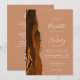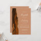 Le bord gauche de cette élégante faire-part de mariage moderne est orné d'une bordure d'aquarelle orange brûlée, recouverte d'une parties scintillant en faux or. Le texte personnalisable combine écriture ivoire, cuivre et polices italiques sur un arrière - plan en terre cuite poussiéreux. L'envers offre de l'espace pour les détails mariages sur un arrière - plan en terre cuite solide, ainsi qu'un code QR que les clients peuvent scanner pour visiter votre site Web et RSVP, qui économise le coût d'impression et d'envoi de cartes RSVP séparées.