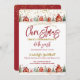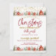 Un personnel de bureau sublime travaille à l'invitation de Noël ou de fête de Noël. Ce design glamour de vacances doré et rouge présente une scène de rue enneigée avec des arbres. Facile à customiser avec vos propres détails d'entreprise, de personnel ou de bureau.