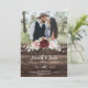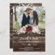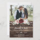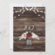 Celebrate your love with this elegant Rustic Burgundy and Blush Floral Wedding Invitation, featuring a romantic photo layout framed by deep burgundy and soft blush watercolor roses, lush greenery, and softly glowing string lights. The rich woodgrain background adds a cozy, country-inspired touch, perfect for barn weddings, rustic chic celebrations, and fall or winter nuptials.