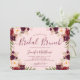 Invitation brunch à la nuptiale florale élégante horizontale avec police calligraphie en écriture bordeaux avec accents d'aquarelle florale rose roux et bordeaux ajoutés. Customisez avec votre nom et vos couleurs. Ajoutez toutes vos informations de douche nuptiale à l'aide des invites de menu faciles à utiliser de Zazzle. Vient avec une enveloppe blanche vierge.