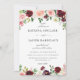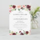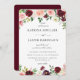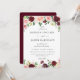 Elégante aquarelle rouge bordeaux, rose rousse, pêche et blanc arrangements floraux, faire-part de mariage. La carte présente un design de typographie moderne et élégant. Burgundy rouge solide support couleur.