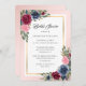 Invitation à la douche nuptiale florale bleu marine, bordeaux et rose vif.