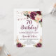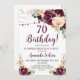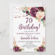 Burgundy Blush Pink Script Surprise Anniversaire Fête Invitation pour femmes. Aquarelle rose Bourgogne Florale Anniversaire Invitation 13ème 16ème 18ème 20ème 21ème 30ème 40ème 50ème 60ème 70ème 80ème 90ème 100ème, tous âges. Partie d'une collection. Éléments correspondants disponibles.