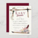 Arche de Boho avec plumes, cristaux, flèches et fleurs encadrent une délicieuse invitation au Baby shower. Articulé avec un rouge bordeaux vif et un emblème flèches. Parfait pour toute saison. Vos invités anticiperont un événement amusant et unique. Un peu fantaisiste, un peu occidental et un peu rustique.