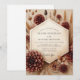 Deep crimson blossoms and warm earthy tones create a romantic, rustic ambiance. This design evokes a feeling of autumnal charm with its rich color palette and intricate floral detailing. Perfect for a natural, elegant gathering.