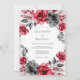 This design features a striking contrast of deep red and moody charcoal grey watercolor roses. The artistic floral arrangement creates a sophisticated and dramatic atmosphere, perfect for a cold-season event. Elegant foliage in varying shades of grey complements the bold blossoms against a clean white backdrop.