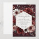 Rich, deep burgundy hues dominate this romantic design, featuring lush, layered blooms and delicate foliage. A moody, opulent atmosphere is created by the dark floral elements and subtle pops of cream and white. Evokes a sense of dramatic elegance and enchanting passion.