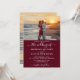 Elégant script photo faire-part de mariage boho bordeaux avec deux photos, simple noir sur blanc.