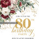 Invitation Burgundy Floral Gold Greenery 80th Birthday