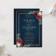 Invitation Burgundy Floral Gold Navy Bleu Russe Mariage