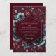 This design features a rich burgundy backdrop adorned with moody, romantic floral illustrations in muted blues and deep reds. Evokes an atmosphere of intimate enchantment and sophisticated elegance. Perfect for a darkly romantic affair.