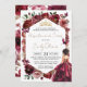 Burgundy Floral Presentation of 3 Years Invitation — an elegant 5" x 7" card featuring deep wine watercolor roses and soft eucalyptus, framed by delicate gold accents. Fully editable text to celebrate her special faith-filled event, designed by CaMiDesigns. For orders, shipping, product details, and further assistance, please contact Zazzle Customer Care directly.