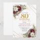 Invitation Burgundy Flowers Eucalyptus Gold 80th Birthday