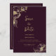 Invitation Burgundy foncé or pivoine floral Enregistrer la da