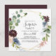 Cette invitation à la fête de surprises géométriques et bordeaux est parfaite pour un anniversaire moderne, une retraite ou toute fête surprise. L'élégant design boho comprend des fleurs couleur marine, rose vif et des fleurs à l'ombre du vin avec des détails artistiques au crayon.