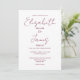 Ce faire-part de mariage de script minimaliste bordeaux peut être personnalisé avec vos informations en typographie chic avec les détails de votre site mariage et votre code QR au verso. Conçu par Thisisnotme©
