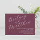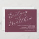 Faire-part de mariage photo minimaliste bordeaux avec un script de calligraphie simple et élégant pour les noms des mariés et mariés.