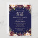 Invitation Burgundy Navy Elégant Floral 50e Anniversaire