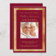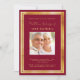 Une invitation d'anniversaire élégante, moderne et simple. Un arrière - plan bordeaux décoré de faux cadres dorés. Personnalisez et ajoutez un nom photo et des détails. Texte doré.