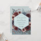Evoke a sense of moody romance with this elegant artistic design. A dramatic floral arrangement is rendered in a beautiful painterly style, creating a sophisticated atmosphere. The color palette features deep burgundy roses, dark blue blossoms, and soft anemones set against a contrasting dusty slate blue backdrop.