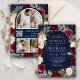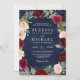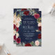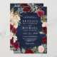 Invitation Burgundy Pêcher Floral Navy Blue QR Code Mariage