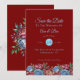 Invitation Burgundy Peony et Blue Rose Enregistrer la date