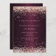 Pour un 21ème anniversaire élégant (ou tout âge). Une couleur arrière - plan bordeaux. Décoré de confettis d'or rose. Personnalisez et ajoutez un nom, un âge et des détails de la fête.
