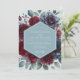 Evoke a sense of moody romance with this elegant artistic design. It features a stunning arrangement of lush watercolor florals in deep burgundy and dark purplish-blue hues. Muted sage green leaves create a soft contrast against the rich blooms, making this ideal for a sophisticated and dramatic affair.