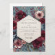Embrace a mood of dramatic romance with this elegant botanical design. A stunning composition of deep burgundy and crimson blooms flourishes against a backdrop of muted slate blue foliage. Painterly anemones, delicate roses, and soft blush blossoms create a lush, layered arrangement. This opulent artistic piece is perfect for a sophisticated autumn or winter union.