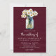 Invitation Burgundy Wood Daisies Mason Jar QR Code Wedding