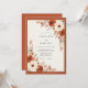 This design showcases a rich palette of burnt orange and cream with earthy botanical accents. Lush roses and delicate ranunculus are paired with autumn-inspired foliage and dried leaves for a warm harvest feel. The artistic floral arrangements are positioned in a balanced layout against a soft off-white backdrop. It evokes a sophisticated and cozy atmosphere ideal for a late-season event.