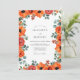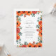 This design features a vibrant arrangement of burnt orange anemones and roses that create a warm, inviting atmosphere. Accented with silvery sage green eucalyptus leaves and delicate berries, the botanical display offers a sophisticated touch to the white background. The rich autumnal color palette makes this a perfect choice for summer or fall events seeking a polished, floral aesthetic.