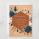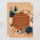 Embrace a warm, bohemian aesthetic for your special day. This artistic design features a striking palette of rich burnt orange and deep indigo blue, softened by creamy ivory hues. Painterly arrangements of lush blossoms, spiky blue thistles, and delicate dried grasses create a beautifully rustic and autumnal feeling.