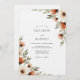 Evoking a warm, earthy ambiance, this design features lush painterly blooms in rich burnt orange and soft cream hues, complemented by muted green foliage. Delicate floral arrangements adorn the corners, creating a refined and romantic atmosphere.