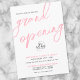 A bold and feminine invitation featuring a chic mix of pink and black fonts, perfect for a boutique, salon, or women’s brand grand opening, product launch, or event. The design showcases “Grand Opening” in oversized handwritten script calligraphy stretching across the top and off the edges of the page for a stylish and eye-catching look.