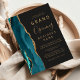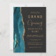 clients Invitations à la grande ouverture de votre entreprise avec cette élégante invitation moderne, avec une bordure turquoise couleur d'aquarelle bleue découpée avec parties scintillant en faux or. Le texte personnalisable combine écriture manuscrite couleur or, cuivre et polices italiques sur un arrière - plan non noir. L'envers présente un design d'agate turquoise et or assorti.