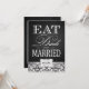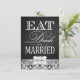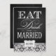 Mangez Boire et être marié, élégantes invitations de mariage Masque noir et blanc avec élégant arrière - plan en fibre noire..
