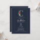 Invitation C Monogramme Dernière Initiale Moderne Fleurs Bleu