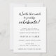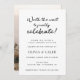Invitation à la réception de mariage avec "vaut la peine d'attendre pour enfin fêter !" dans un script noir amusant. Customisez avec votre photo à l'arrière ou supprimez si aucune photo n'est désirée.