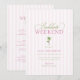 Organisez le week-end dans le style d'une destination sans effort avec cette invitation de week-end de bachelorette rétro avec itinéraire, conçue dans une palette de rose et de vert doux avec un motif de palmier classique inspiré des clubs de plage de Palm Beach. La mise en page épurée permet de décrire facilement les événements, les heures et les lieux tout en conservant un look soigné et prêt pour le resort. Parfait pour les week-ends de bachelorette de destination, les escapades côtières et les voyages de groupe ensoleillés où le style et la coordination vont de pair.